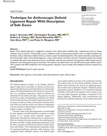 (PAGE 1/1)Arthroscopic Deltoid Ligament Repair: Technique and Anatomic Study