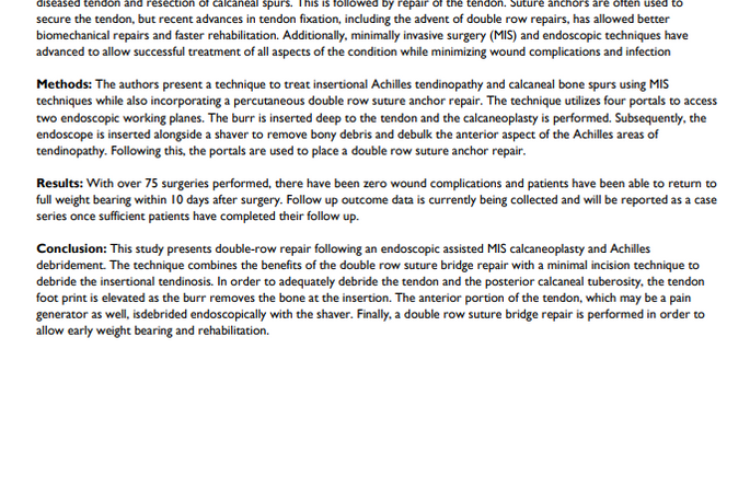 (PAGE 1/2) Endoscopic Insertional Achilles Reconstruction with Double Row Suture Bridge Reconstruction: A
